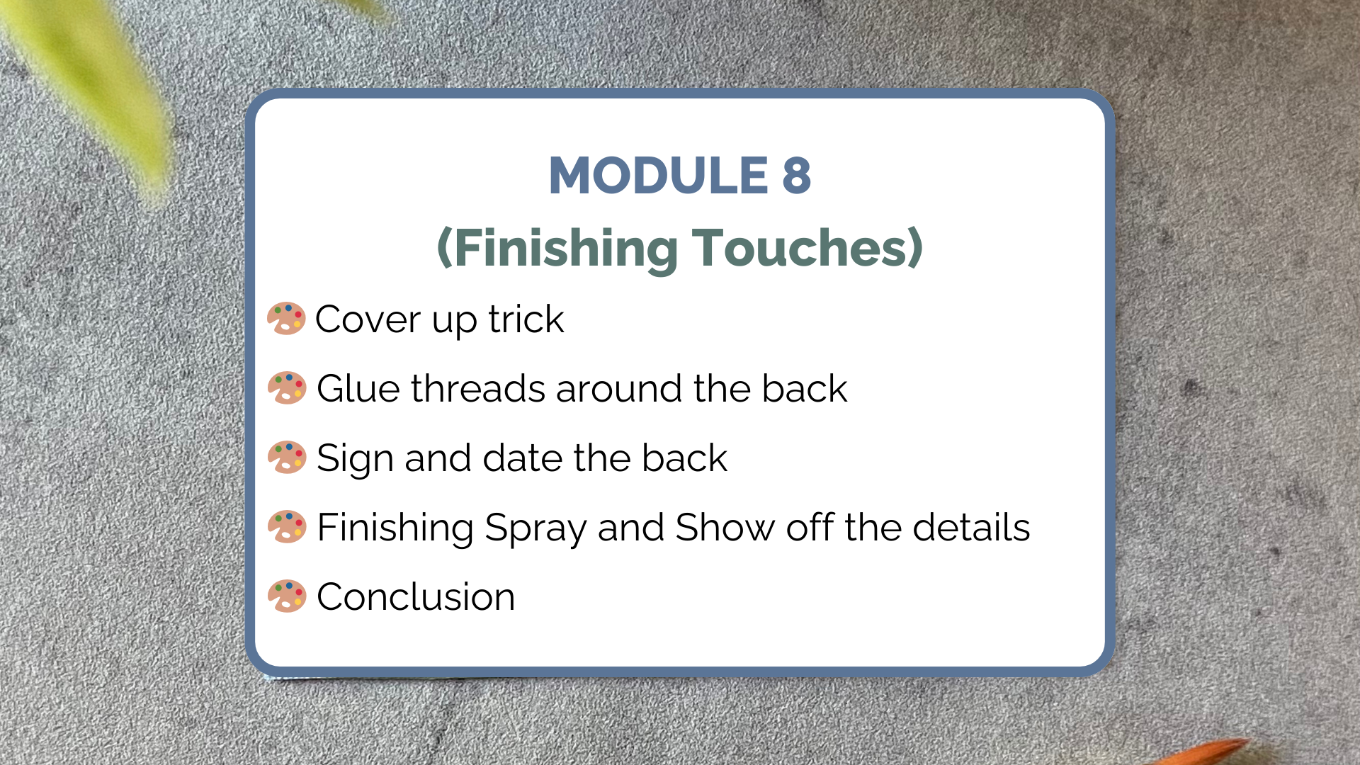 As soon as you sign up for the course, you will join a group of people who, like you, share this passion and are following the same course as you. This means you'll be able to exchange ideas, tips or ask questions because you'll be surrounded by people who love art the same way you do!