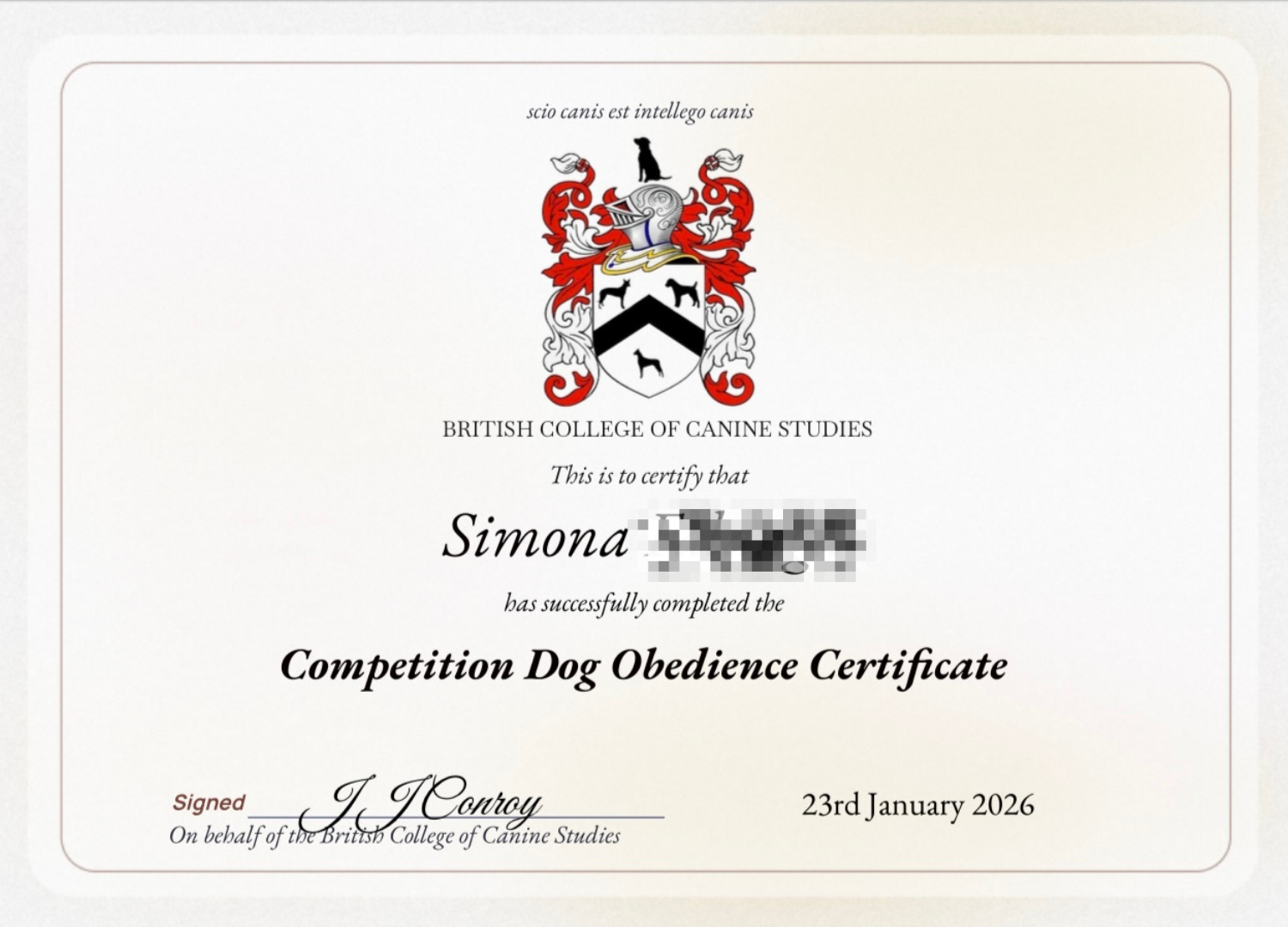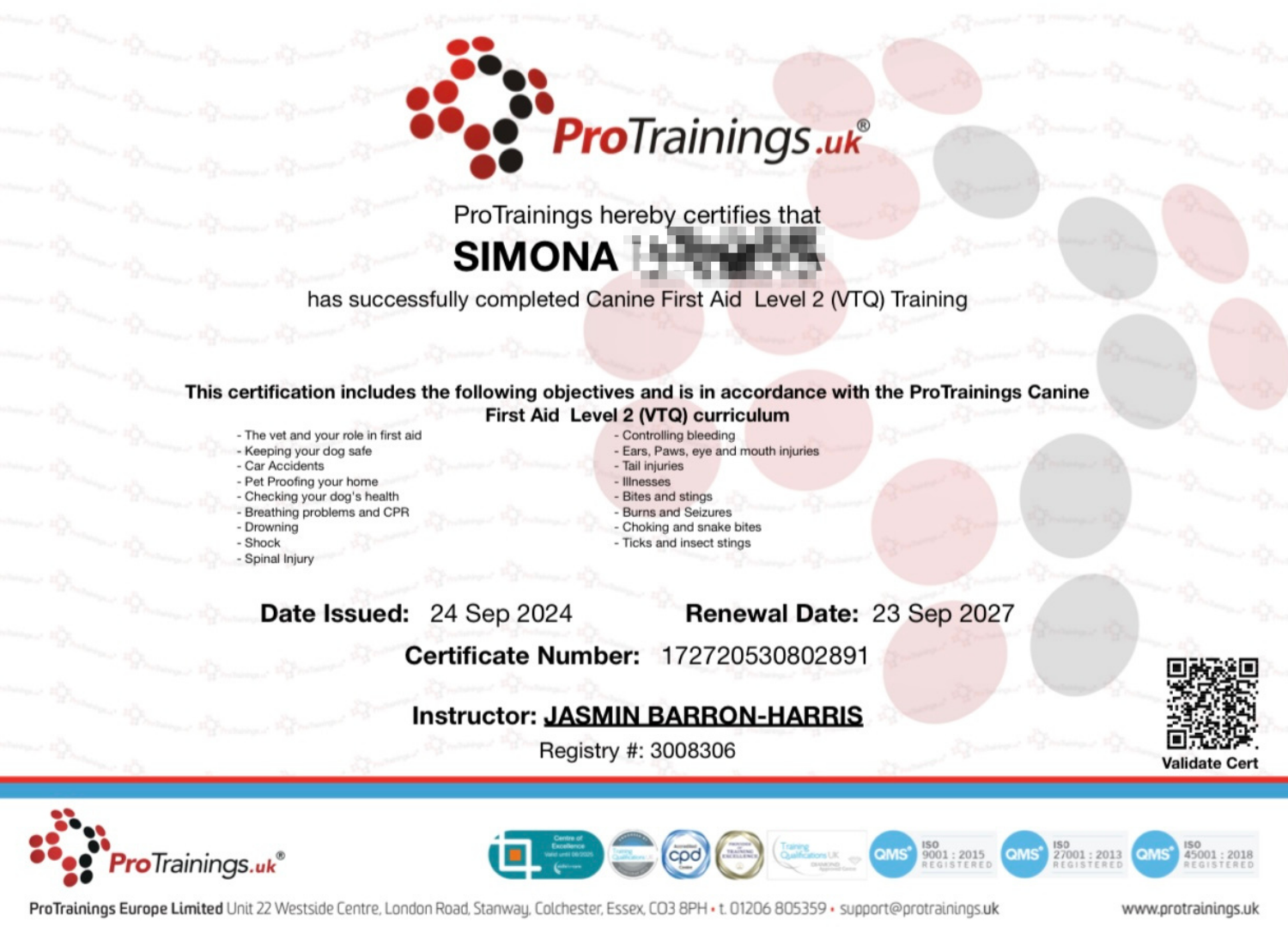 More recently, I mentored under Phoenix K9 USA to solidify my knowledge and gain hands on experience, and I am currently working towards a level 4 diploma in Advanced canine behaviour.