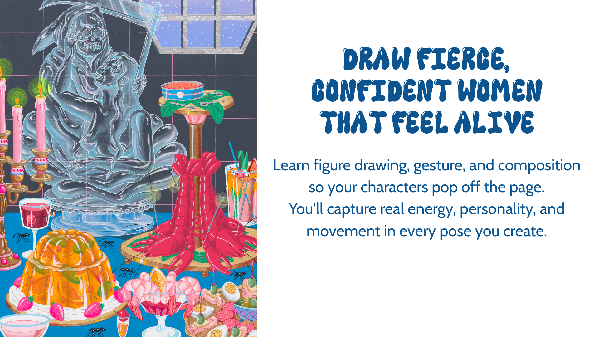 With my course, I want to invite you into a space of human complexity, where you can learn to create strong female figures while building confidence in your drawing skills and making vibrant and engaging art - join the waitlist now!