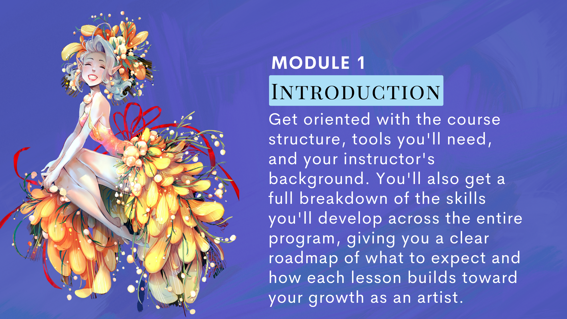 The course has 6 modules for X+ hours of learning and practicing. It also includes 20+ video lessons! You can pause and replay the videos as much as you want. The course is suitable for everyone, teens, adults and children because there is no explicit content. It would be best to take the course in order, because it will start from the basics to lessons at a more advanced level.